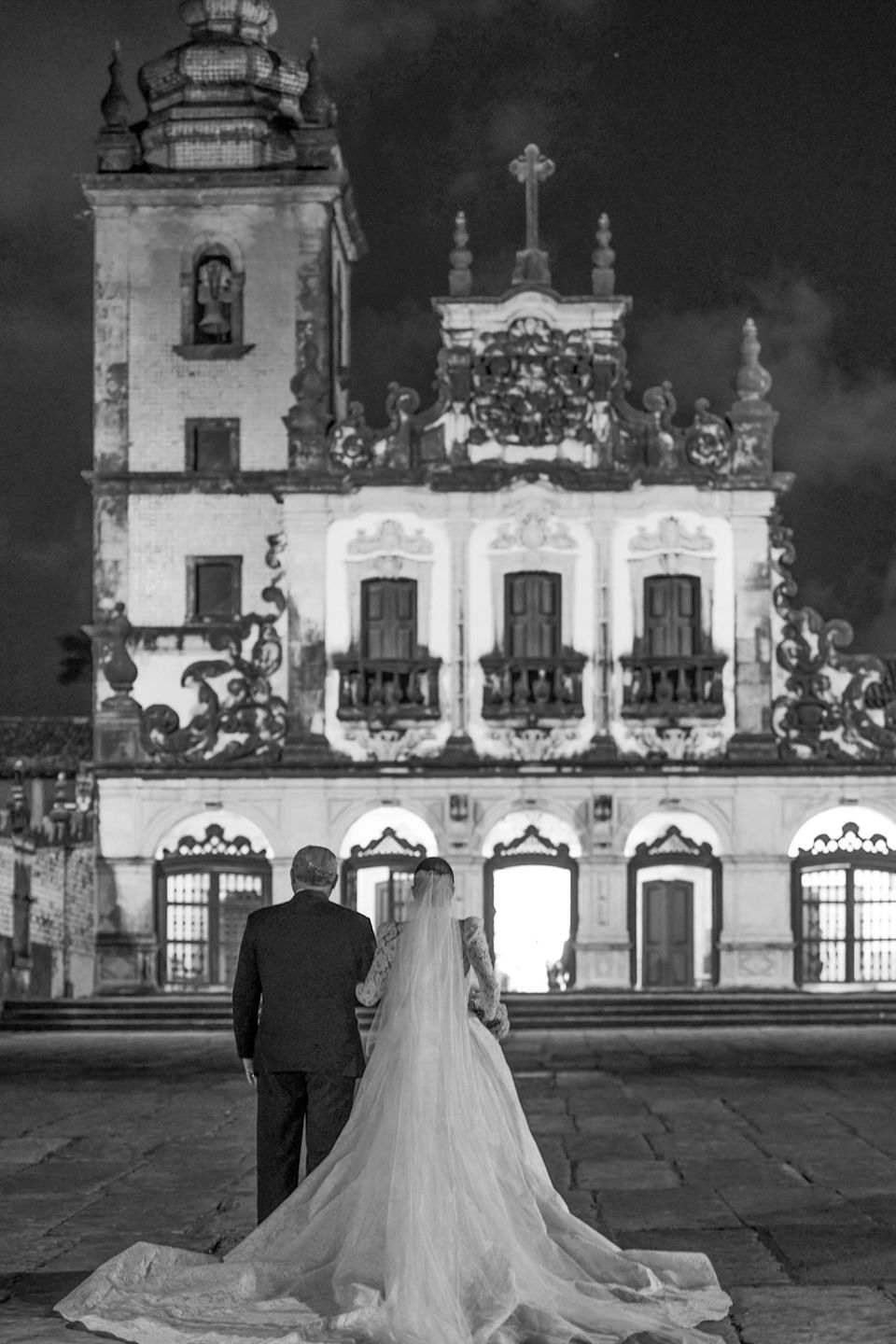 o braço dado com a filha.